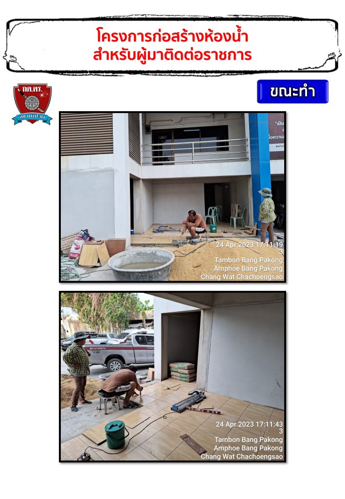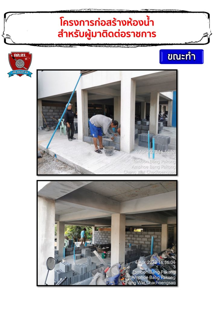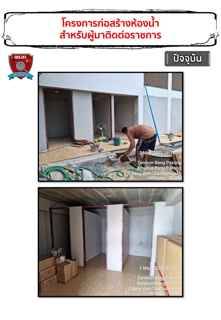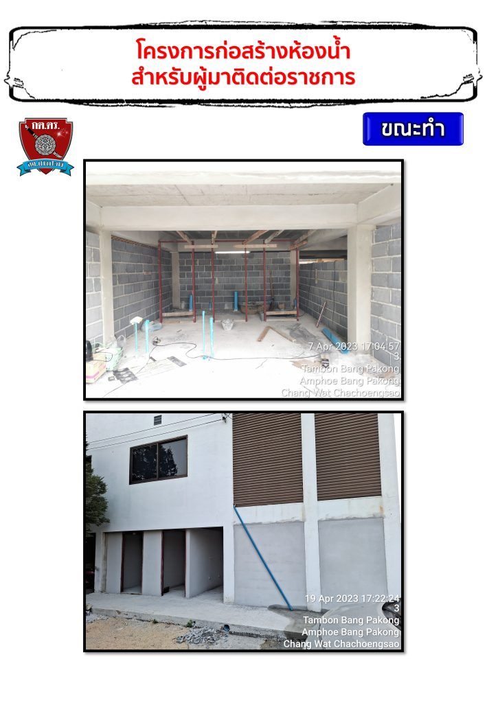โดยได้มีการมติในที่ประชุมให้จัดสร้างห้องน้ำสำหรับผู้มาติดตามราชการ เนื่องจากอาคารที่ทำการสถานีตำรวจภูธรบางปะกงหลังเก่าอยู่ระหว่างรื้อถอนและสร้างอาคารที่ทดการทดแทนใหม่ ผลการดำเนินการตามภาพที่ปรากฎด้านล่าง