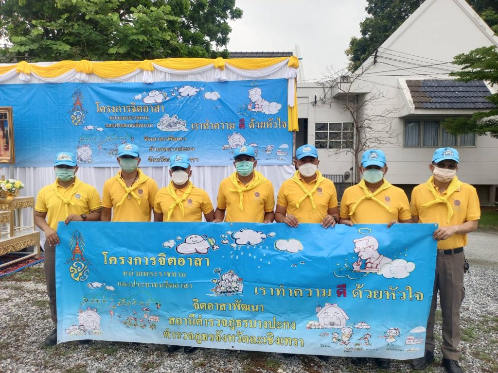 สวป.สภ.บางปะกง พร้อมข้าราชการตำรวจจิตอาสา สภ.บางปะกง ร่วมกับ นายอำเภอบางปะกง สาธารณสุขฯ ข้าราชการทหาร ข้าราชการพลเรือนและประชาชนจิตอาสา ต.ท่าสะอ้านฯ ร่วมจัดกิจกรรมจิตอาสาเฉลิมพระเกียรติสมเด็จพระนางเจ้าฯพระบรมราชินี เนื่องในโอกาสวันเฉลิมพระชนม์พรรษา 3 มิถุนายน 2566 จิตอาสาบำเพ็ญสาธารณประโยชน์ และบำเพ็ญสาธารณกุศล ณ ลานกิจกรรมหลังอาคารศูนย์วิจัยเเละพัฒนาประมงชายฝั่งฉะเชิงเทรา หมู่ที่ 8 ตำบลท่าสะอ้าน อำเภอบางปะกง จังหวัดฉะเชิงเทรา