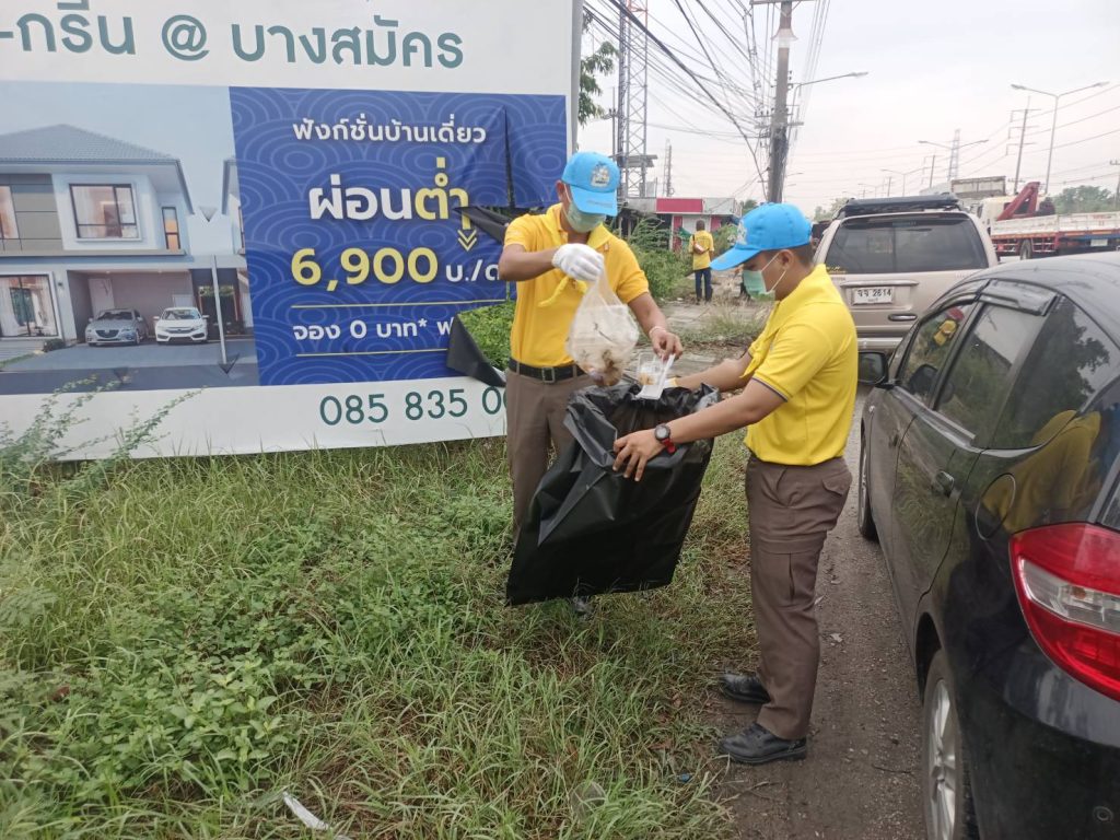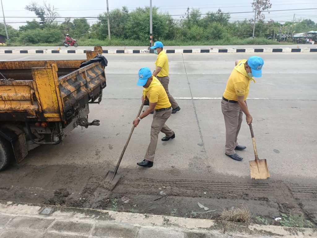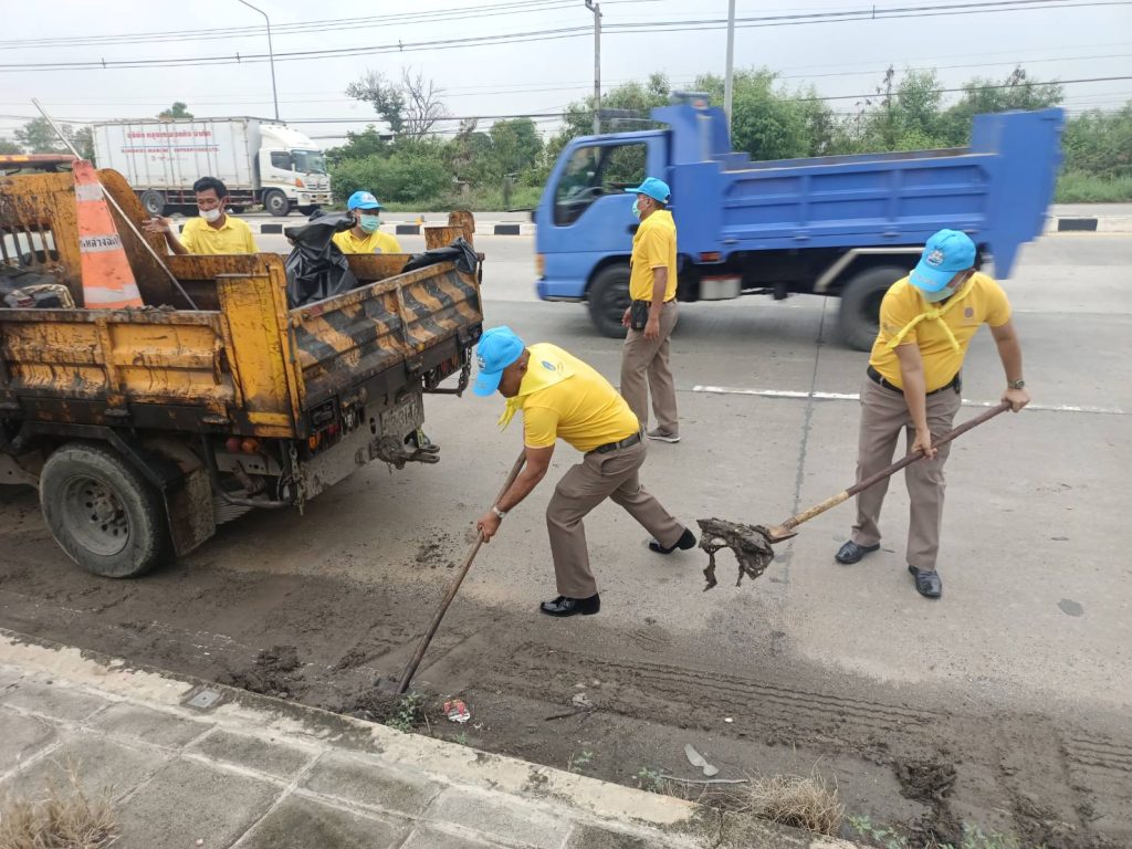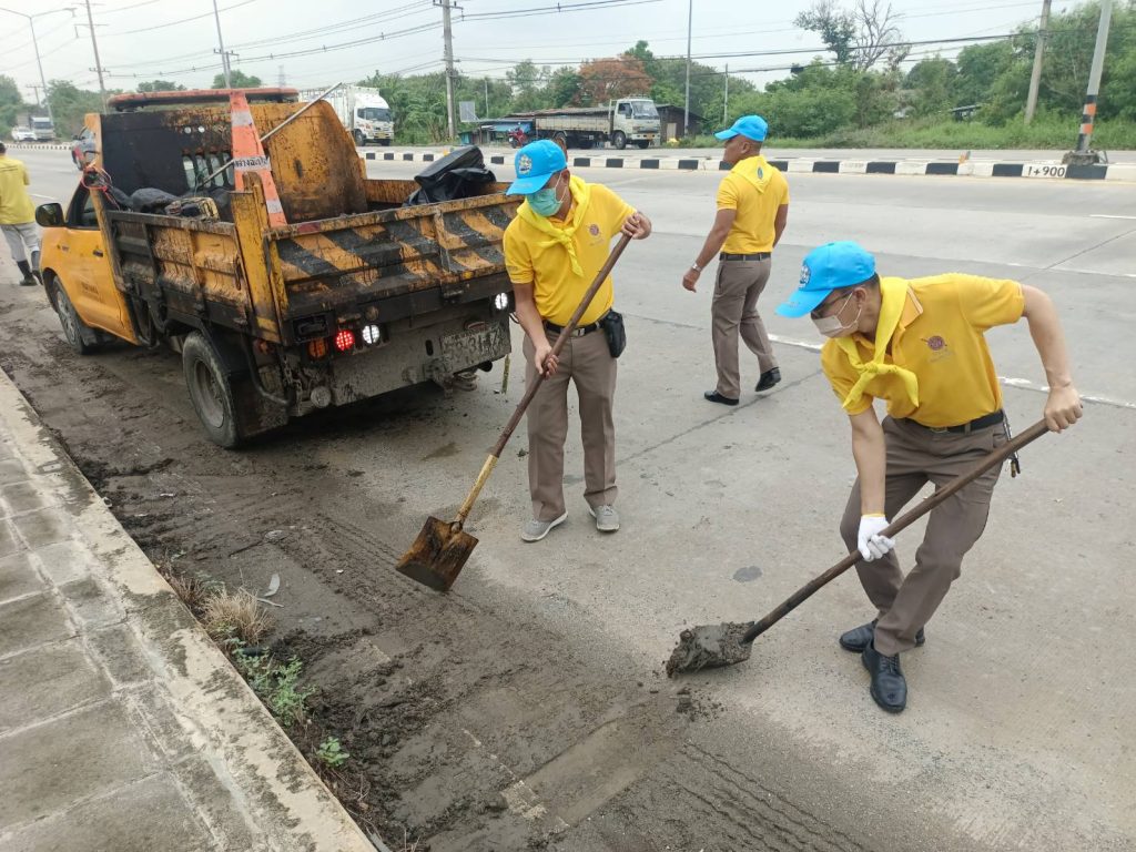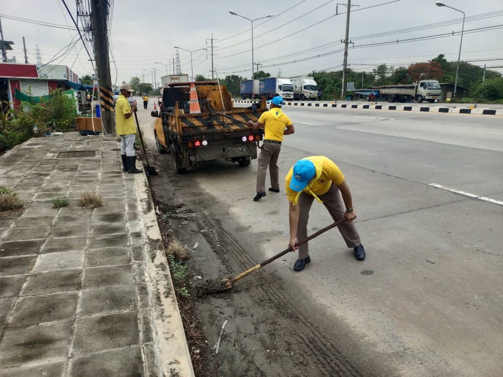 #กิจกรรม เก็บขยะ ตัดหญ้า กวาดถนน ตักดินไหล่ทาง บริเวณเเนวถนนสิริโสธรขาเข้าบางปะกงฯ