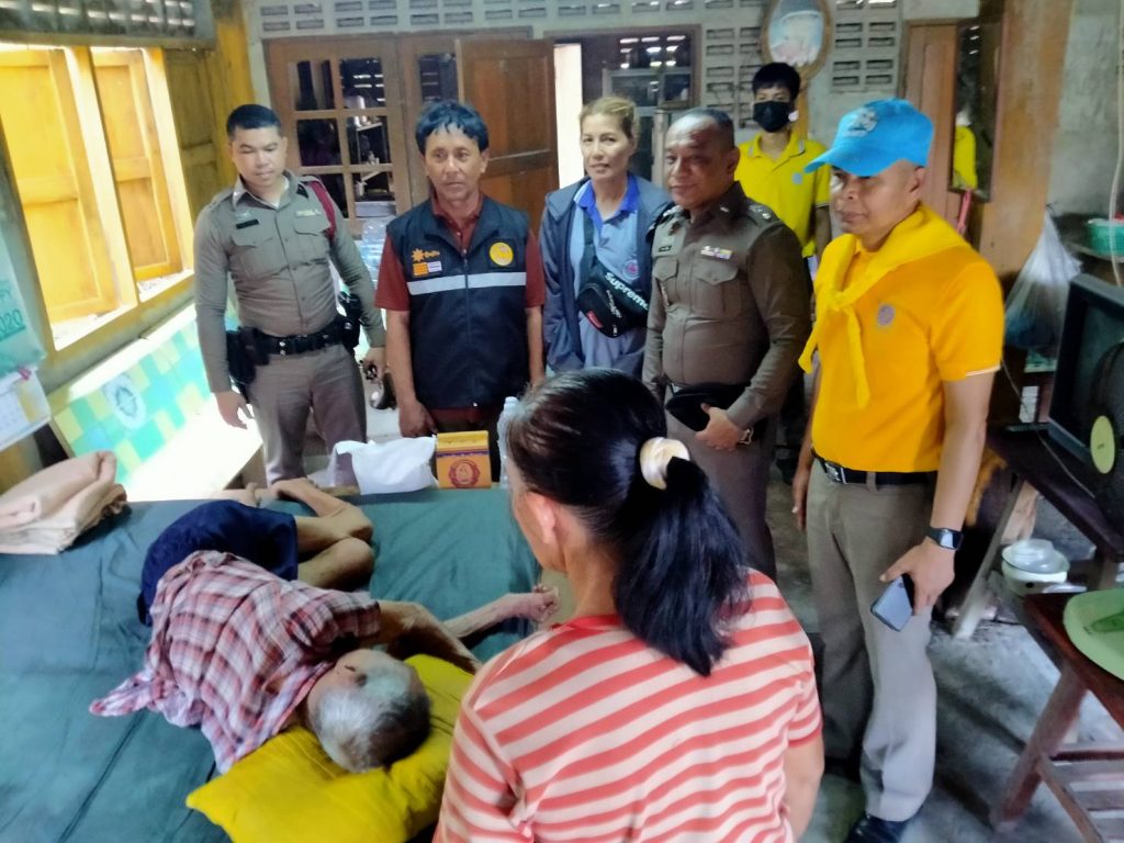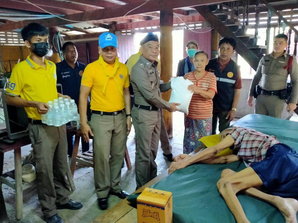 ต่อเนื่อง ผกก.ฯ,รอง ผกก.ปฯ ,สวป.ฯ ลงพื้นที่ตรวจเยี่ยม มอบสิ่งของให้กับผู้ป่วยติดเตียง เพื่อเป็นขวัญกำลังใจให้ นายพยนต์ สำรวย อายุ 92 ปี บ้านเลขที่ 135/1 หมู่ 8 ต.สองคลอง อ.บางปะกง จ.ฉะเชิงเทรา