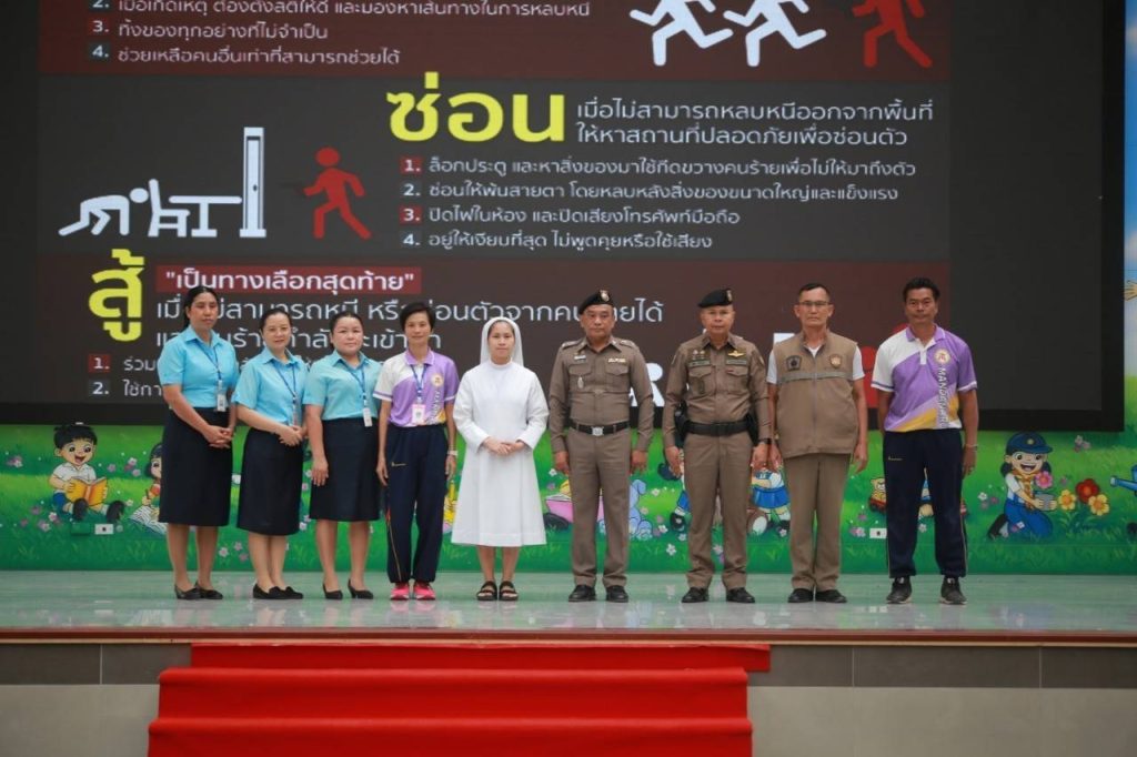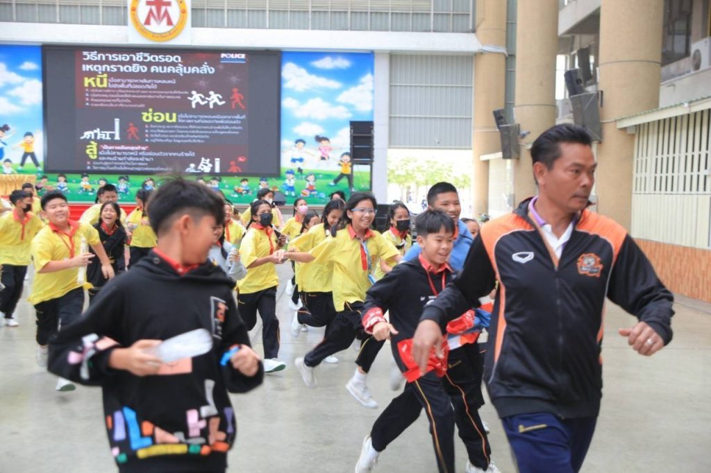 อบรมให้ความรู้และซักซ้อมแผนเผชิญเหตุ เหตุการณ์กราดยิง (หนี ซ่อน สู้ )เพื่อให้คณะครูและนักเรียน ได้รับความรู้และสร้างความเข้าใจในวิธีการป้องกันตัวเองในโรงเรียน