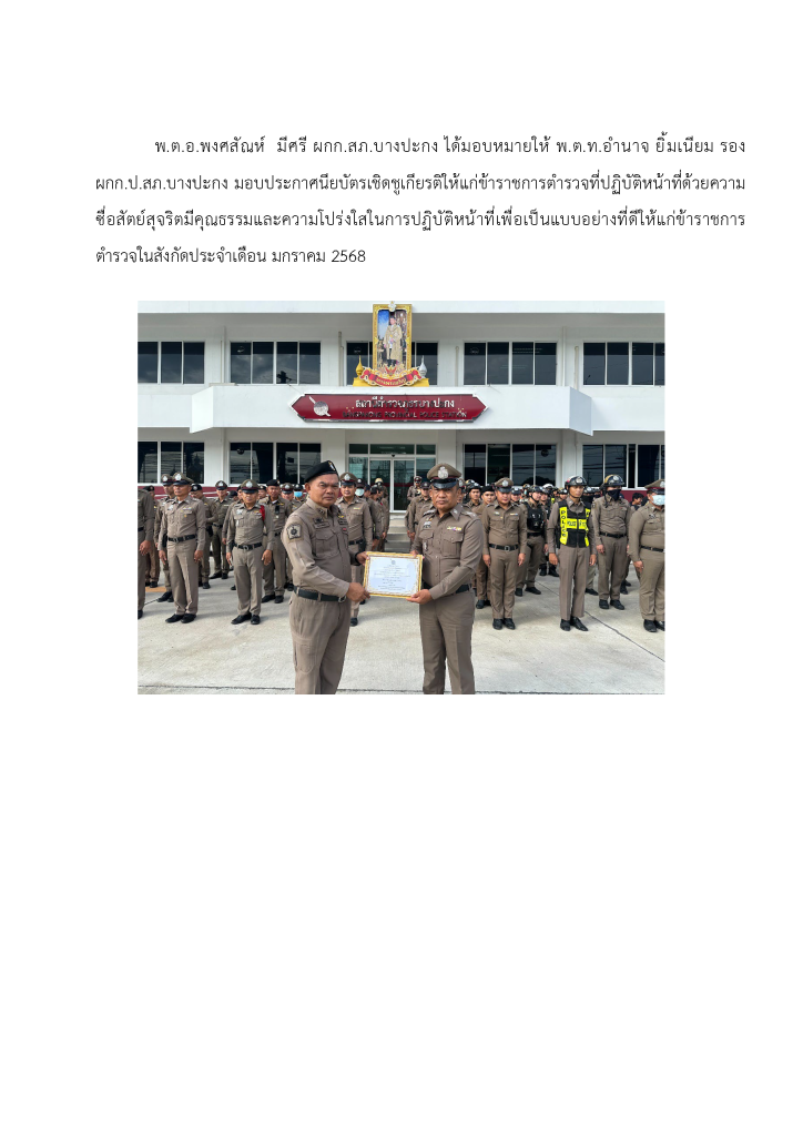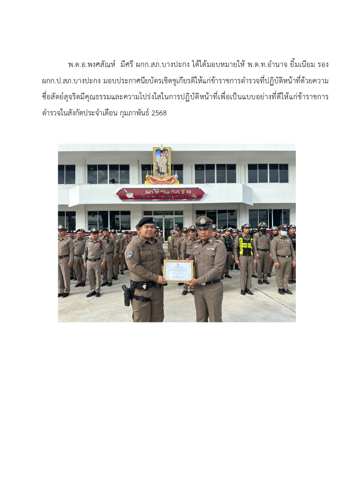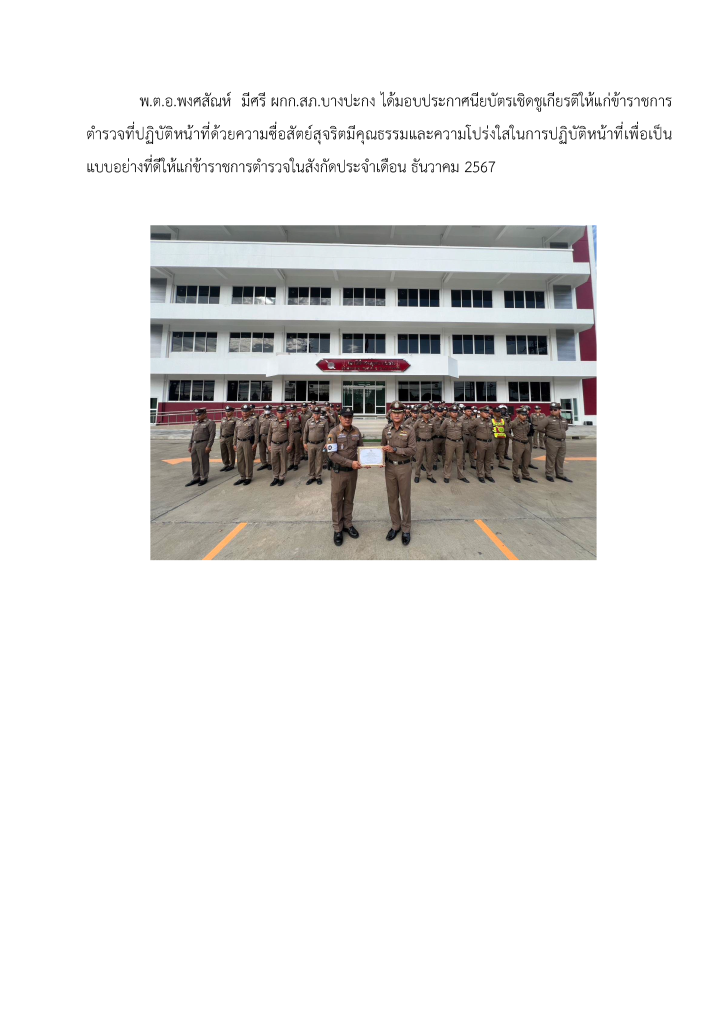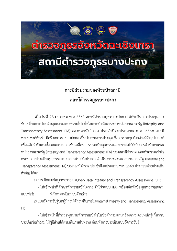 กิจกรรมการมีส่วนร่วมของหัวหน้าสถานีตำรวจในการเสริมสร้างคุณธรรมและความโปร่งใส